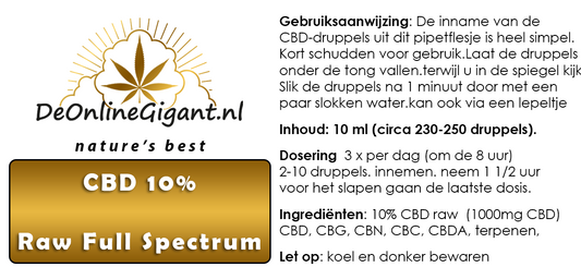 10% CBD olie Raw Full Spectrum 10 ml – 1000 mg CBD