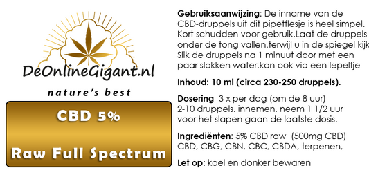 Aanbieding5% CBD-olie Raw Full Spectrum– 10ml